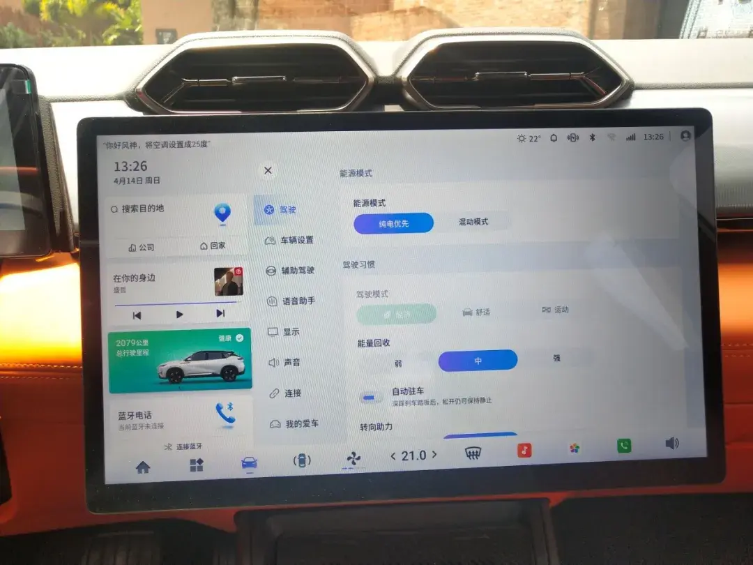 在能源模式上可選擇純電優先及混動模式,而駕駛模式上則分別提供經濟、舒適及運動,且能量回收模式也分弱、中、強;轉向助力分別有舒適、標準及運動,供駕駛者多種組合選擇。實際體驗,東風風神L7整體的行駛質感幾乎與純電動沒什么區別,特別是純電優先模式下,其初段加速十分線性,它并不會刻意去追求過于激進的表現,它很照顧乘坐舒適性,太突兀的提速感,會容易讓座乘人員出現暈車。