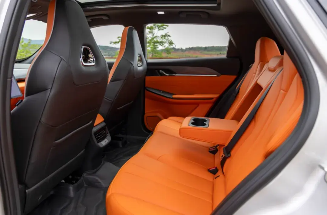 側面的車身腰線貫穿前后,再加上雙拼色的設計,呈現出不錯的視覺效果,再加上D柱獨特的設計,看上去還有點小掀背的既視感。同時,新車采用著隱藏式門把手設計,充電口則設置在右后翼子板區域。車身尺寸方面,新車長寬高分別為4685mm*1905mm*1625mm,軸距為2775mm。后排實際體驗,頭部及腿部均留有非常富裕的空間,且中間地臺也是純平的,后排坐墊要是再稍微長一點的話,那就會有更好的乘坐體驗。