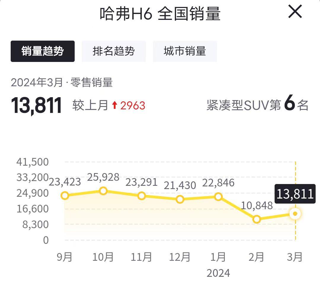 哈弗H6可以說(shuō)是哈弗品牌甚至是整個(gè)長(zhǎng)城汽車絕對(duì)的銷量主力,自2011年推出至今累計(jì)銷量已超過(guò)400萬(wàn)輛,曾累計(jì)103個(gè)月獲得國(guó)產(chǎn)SUV銷量排名第一。不過(guò)隨著同級(jí)別競(jìng)爭(zhēng)對(duì)手的增多,以及新能源車型的快速發(fā)展,這款車如今的銷量相比之前下滑不少。