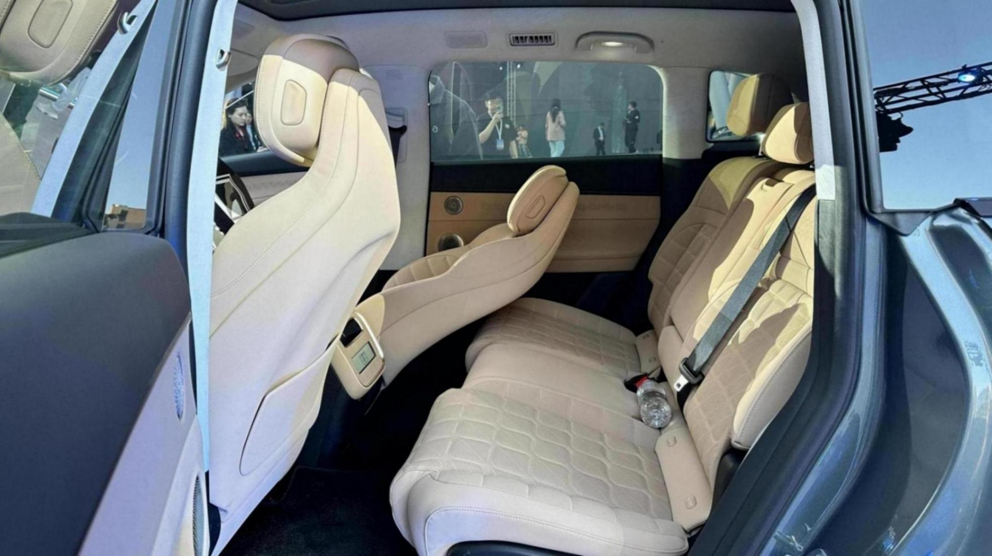 我在現場也靜態體驗了實車,首先外觀是個顯眼包,前包圍兩側有可定義的數顯圖區。內飾大面積的軟質包裹讓人印象深刻,舒適座椅采用Nuprima 微絨啞光真皮,搭配超寬豪華音響頭枕、16向電動浮感零重力副駕座椅,后排座椅則支持四向電動調節。