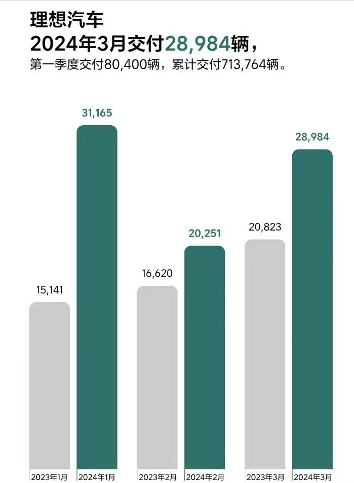 理想汽車3月份交付28984輛,1-3月累計(jì)銷售80400輛,累計(jì)交付超過71.3萬輛。憑借增程式技術(shù)和奶爸車形象,理想汽車在市場(chǎng)上取得的成績(jī)相當(dāng)矚目。理想MEGA 3月銷量?jī)H3229輛不及預(yù)期,也讓理想重新將重心移到主推增程混動(dòng)的L系列上。
