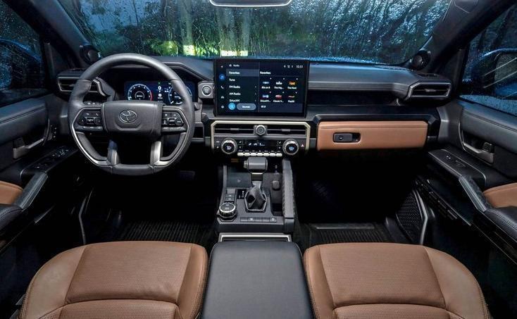 內(nèi)飾部分,全新4Runner在布局上遵循了傳統(tǒng)的設(shè)計(jì)理念,在用料層面以硬塑料和軟包材質(zhì)為主,棕色的面料搭配細(xì)密的縫線,可以滿足一般用戶的日常用車需求。在科技配置方面,標(biāo)準(zhǔn)版配備了7英寸液晶儀表和8英寸中控屏,高配車型升級(jí)為12.3英寸液晶儀表和14英寸中控屏組合,搭配最新的豐田娛樂系統(tǒng),可實(shí)現(xiàn)無線Apple CarPlay和Android Auto手機(jī)互聯(lián)。