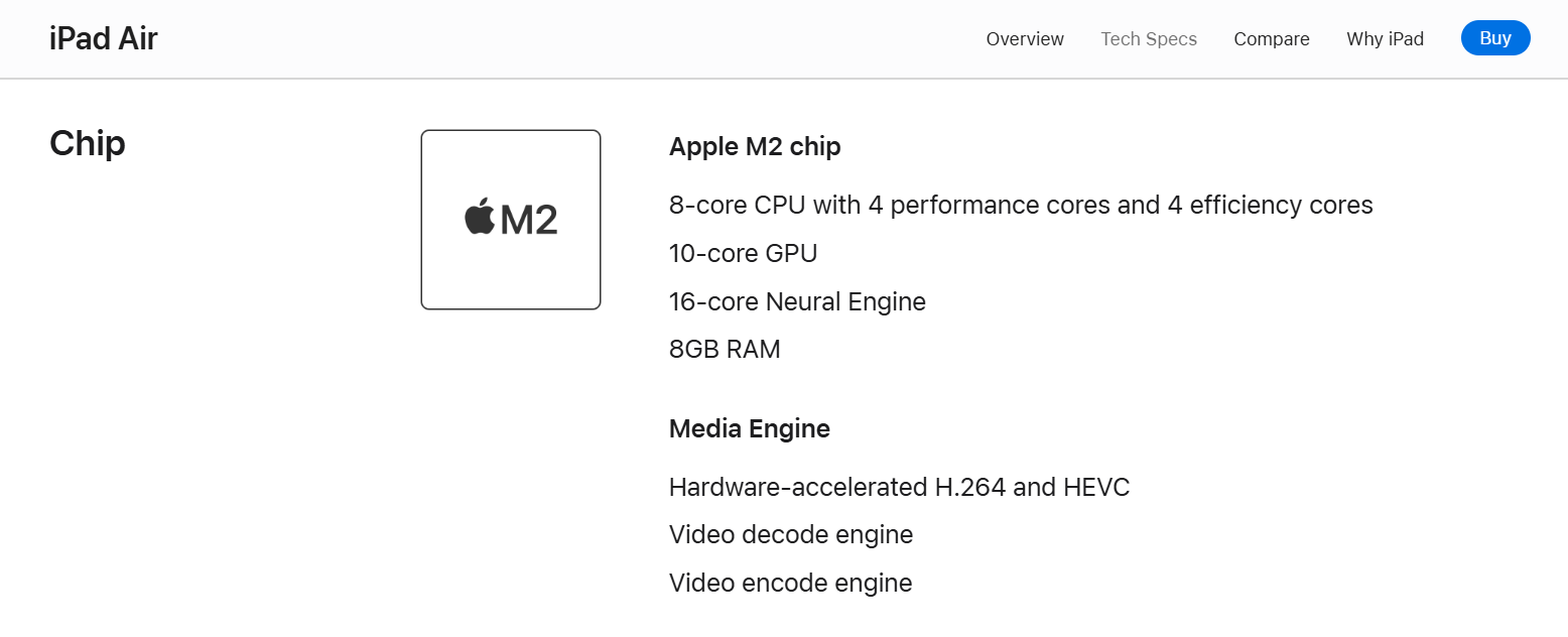 6 月 1 日消息,蘋果官網(wǎng)已經(jīng)修改 2024 款 iPad Air 的技術(shù)規(guī)格信息,顯示其搭載 9 核圖形處理器版本的 M2 芯片,而非此前標注的 10 核 GPU 版本。