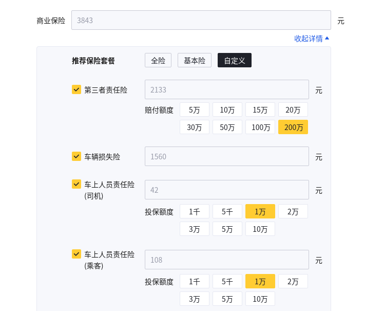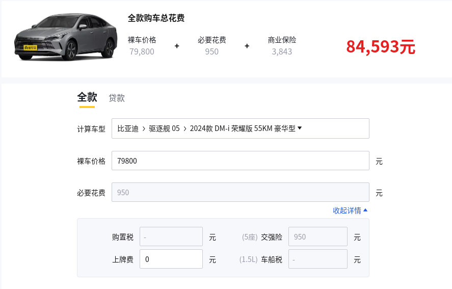 在保險費用方面,我們通過交強險和商業險兩類來計算,為統一標準進行計算,我們參考懂車帝購車計算為準。