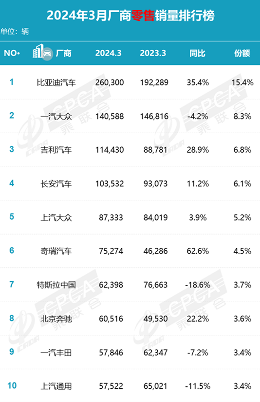 盤子就那么大,你的銷量飆升,那么必有誰的銷量下去,與比亞迪銷量攀升相對的是,日系合資車跌下神壇,3月份僅有一汽豐田進入了品牌銷量前10,而大家熟知的廣汽豐田/本田、東風本田/日產等合資品牌,曾經前三的??途鶡o緣前10。而日系引以為傲的省油省心,在以比亞迪為首的新能源車面前,根本難以形成有效優勢,反而讓其憑借更豐富的配置體驗,以及差距越來越大的車機體驗、智駕體驗,以及零頓挫、強動力的行駛品質,新能源車們很好完成了反戈一擊。