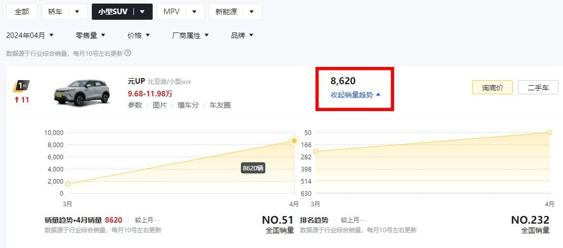翻看4月銷量數據榜單,我們會發現有很多車型都是在3月份時間里所上市的。而其中更是不乏一些熱門品牌旗下的車型,例如比亞迪的元UP。