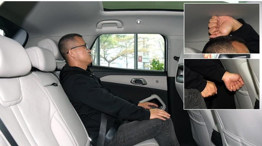 我們就以身高170cm的體驗者舉例來看,后排頭部空間有1拳,腿部空間則是超過了2拳,在同級別車型里空間顯然算是大的那一類型。另外,元UP的后備廂最大容積能達到1320L,這個數據并不低,因此也可以滿足日常出行的需求。