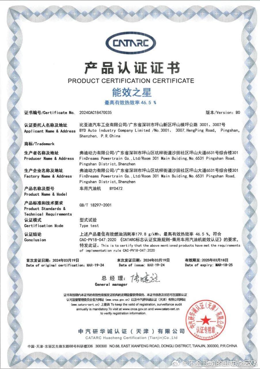 事情的起因是5月28日比亞迪發(fā)布了第五代DM技術(shù),這項技術(shù)的一個核心宣傳點就是實現(xiàn)了全球最高發(fā)動機(jī)熱效率46.06%,并通過其他一系列的“黑科技”實現(xiàn)了百公里NEDC虧電油耗2.9L和2100公里的綜合續(xù)航。