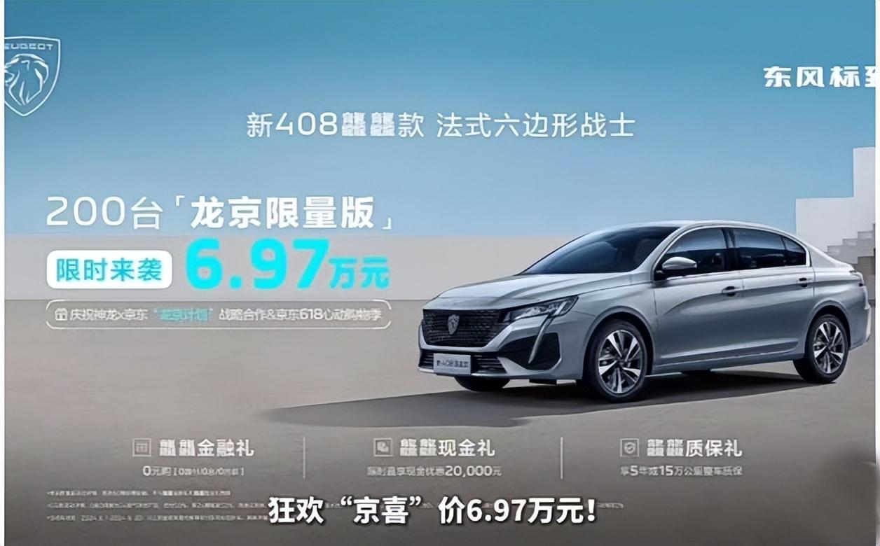 這不,一直都在市場(chǎng)里沒啥關(guān)注度和存在感的法系品牌東風(fēng)標(biāo)致,在近期也是又整起了“花活”。起因是東風(fēng)標(biāo)致近期宣布將推出200臺(tái)標(biāo)致408的龍京限量版車型,新車售價(jià)6.97萬元,基于東風(fēng)標(biāo)致408龘龘款打造,并將于6月1日起在電商渠道銷售。