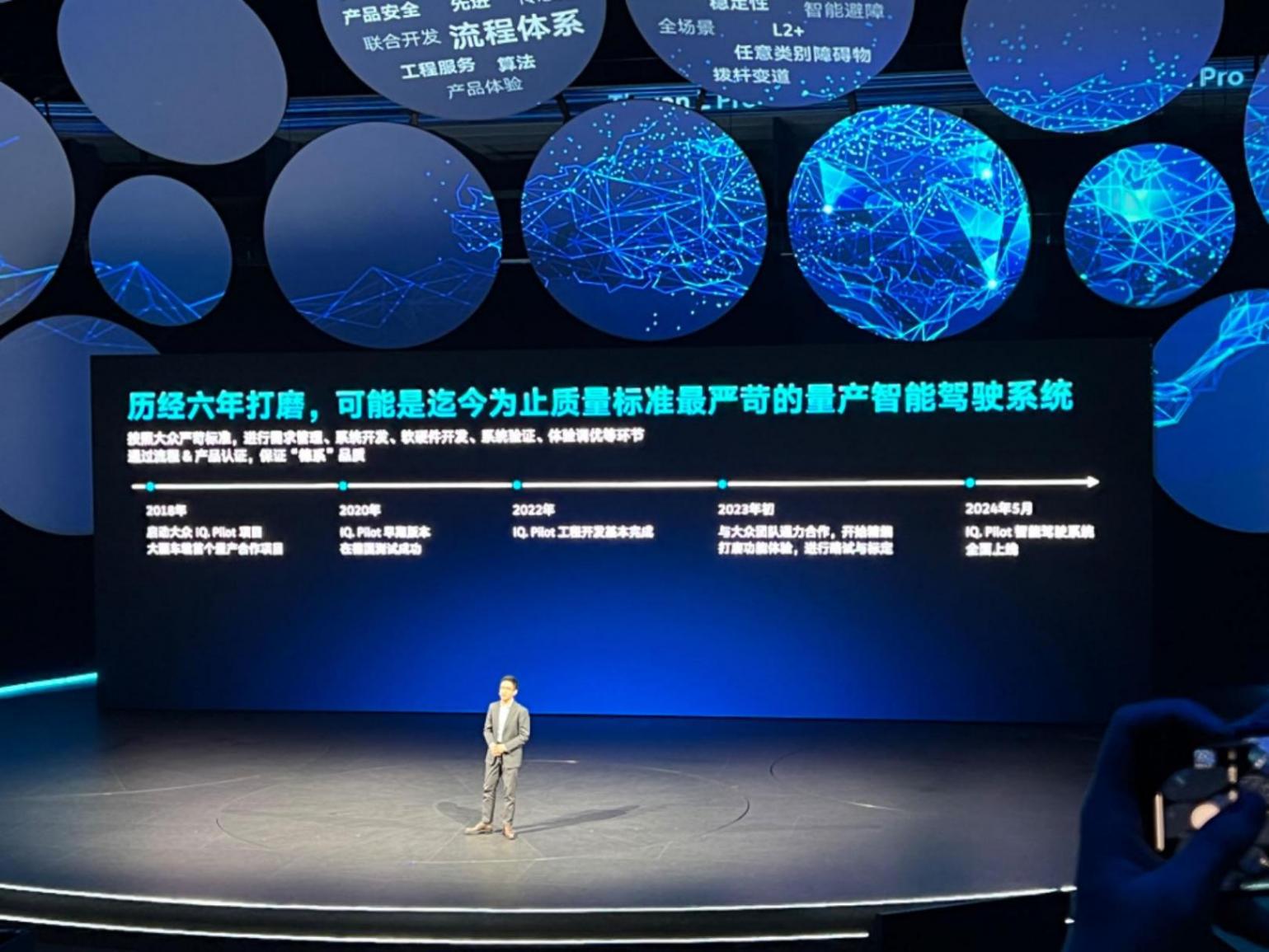 在發布會現場第2個給我很大觸動的是,大眾與大疆聯合開發的智能駕駛輔助系統。因為我們都知道大疆目前在中國也算是數一數二的高科技企業。但是大疆車載的負責人在發布會上姿態卻擺得非常低。他一直在強調大疆車載為了滿足質量標準非常嚴苛的大眾汽車智能駕駛系統,做了非常大的努力。