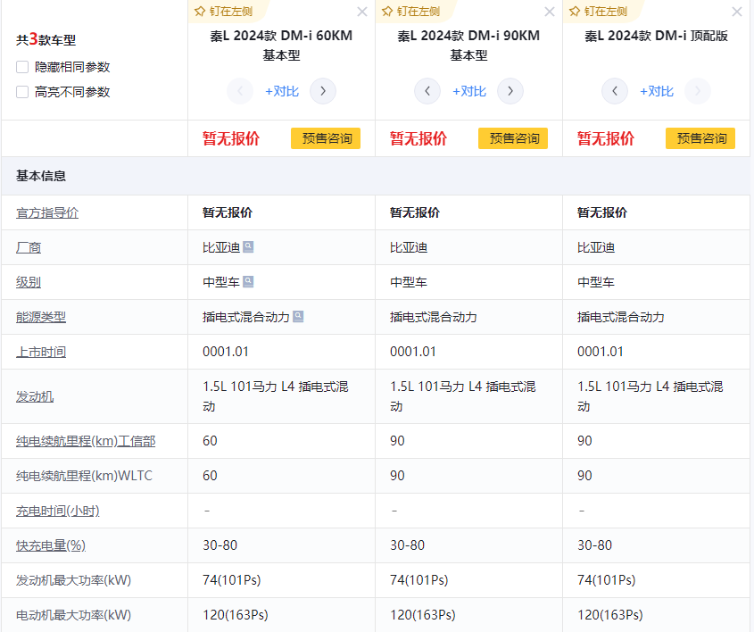 動(dòng)力方面,秦L將會(huì)搭載比亞迪最新的第五代DM-i混動(dòng)系統(tǒng),由1.5L發(fā)動(dòng)機(jī)和電機(jī)組成,其中發(fā)動(dòng)機(jī)的最大功率為74kW,電機(jī)最大功率為120kW,相比秦PLUS DM-i,發(fā)動(dòng)機(jī)(81kW)和電機(jī)(132kW)參數(shù)都有一定的下調(diào)。提供60km和90km兩種純電續(xù)航里程版本,在饋電狀態(tài)下,百公里綜合油耗分別為3.8L和3.9L。
