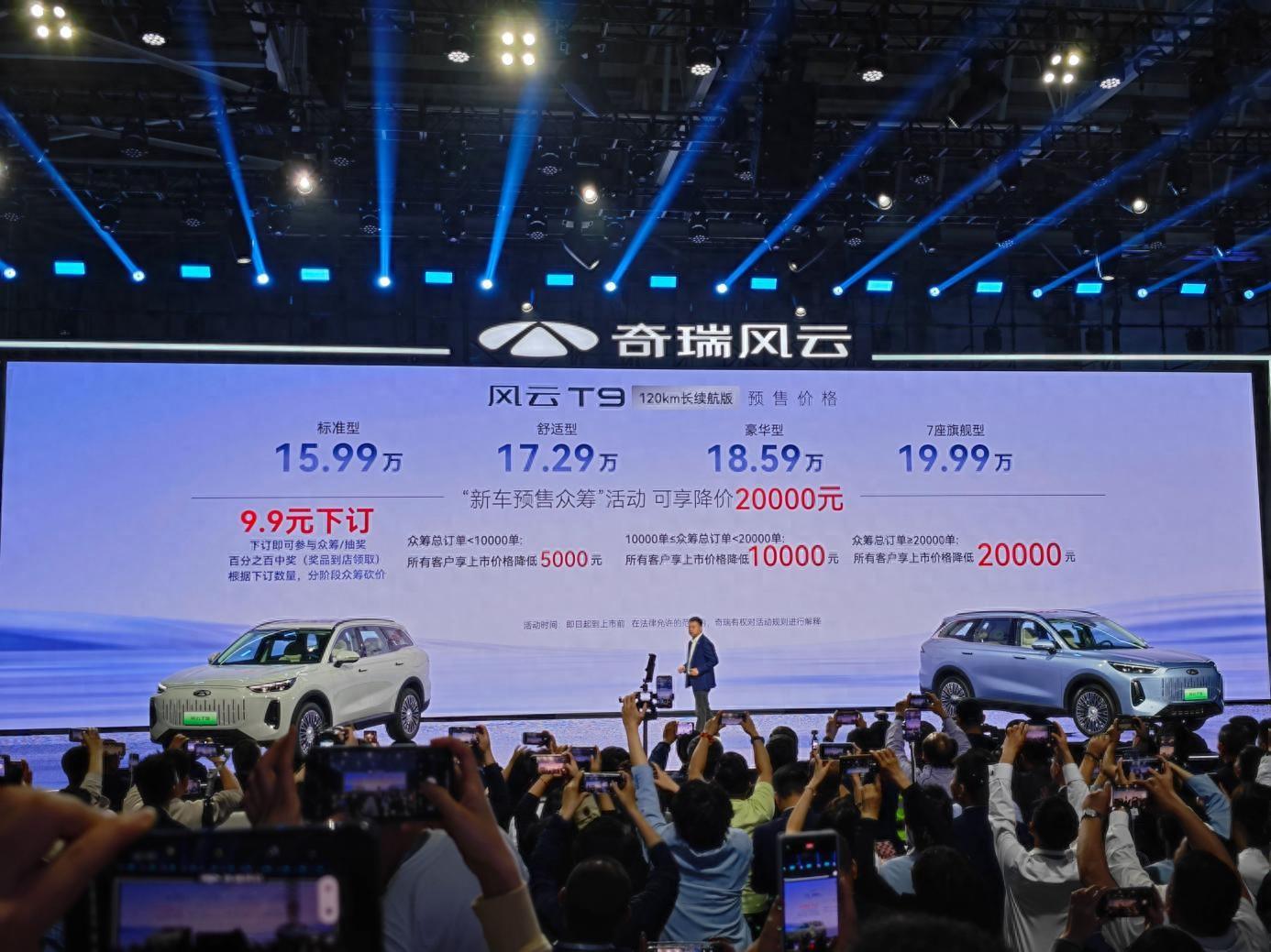 4月18日,奇瑞風云T9正式開啟預售,預售價格為15.99-19.99萬元,不過現在有9.9元下訂參與眾籌的活動,除了可以抽獎之外,如果眾籌訂單超過20000單,那上市時各車型價格將會再降2萬元,相當于車系售價為13.99-17.99萬元,性價比一下就凸顯出來了!