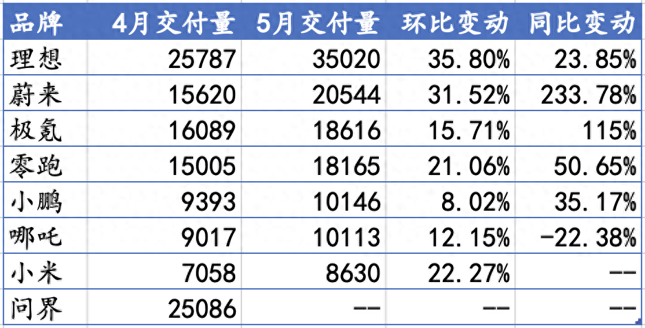 新勢力5月銷量回暖:理想交付3.5萬輛,蔚來、極氪創新高