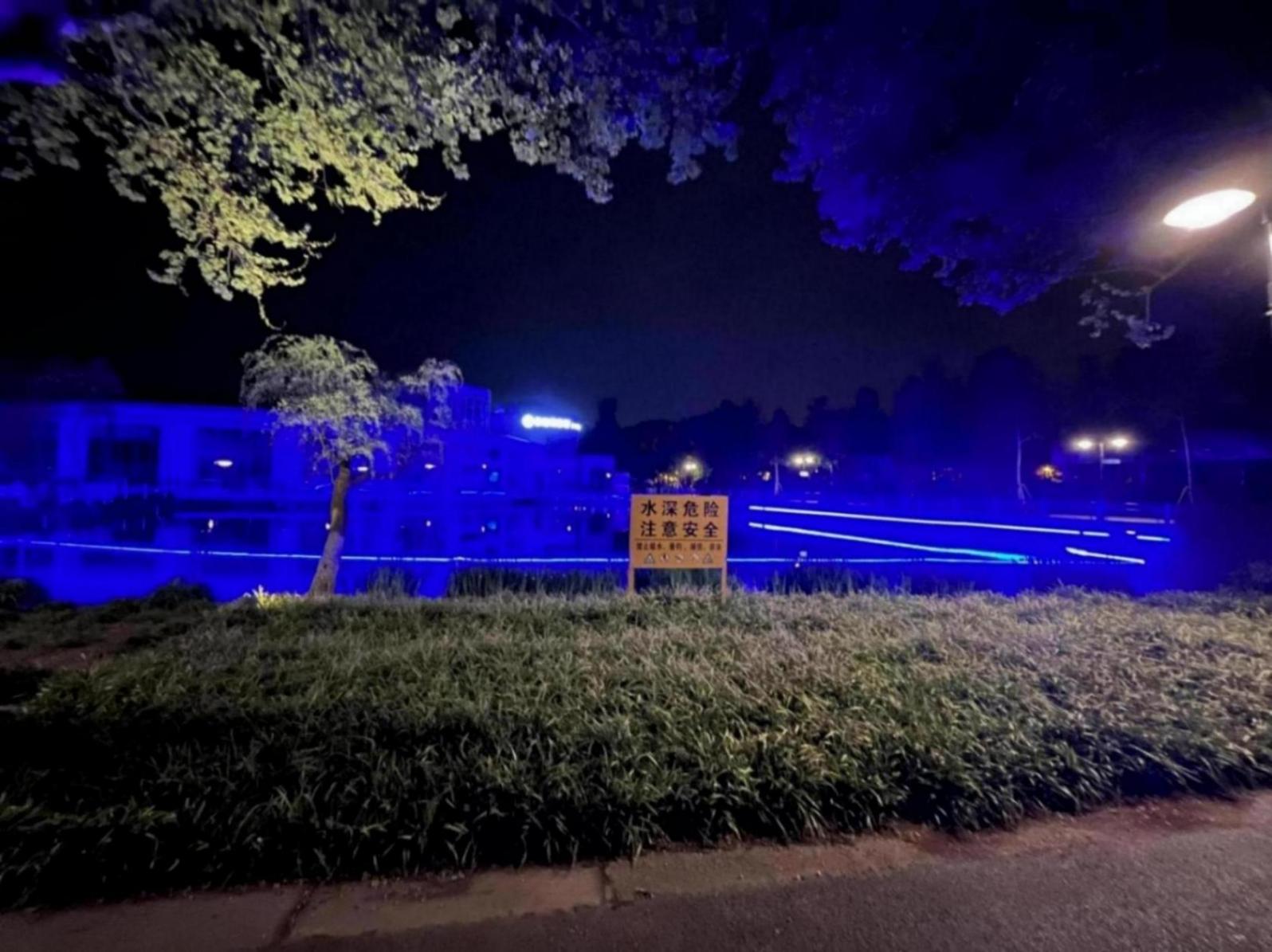 4月18日當(dāng)晚近11時(shí),臧東灝敏銳地發(fā)現(xiàn),鏡天湖上,有一束白光閃過。“估計(jì)是偷偷夜釣的人。”臧東灝隨即拿起對(duì)講機(jī),通知最近的保安人員過來一起查看??上У氖?,等到工作人員趕到湖邊時(shí),疑似垂釣者已經(jīng)隱入黑幕中。