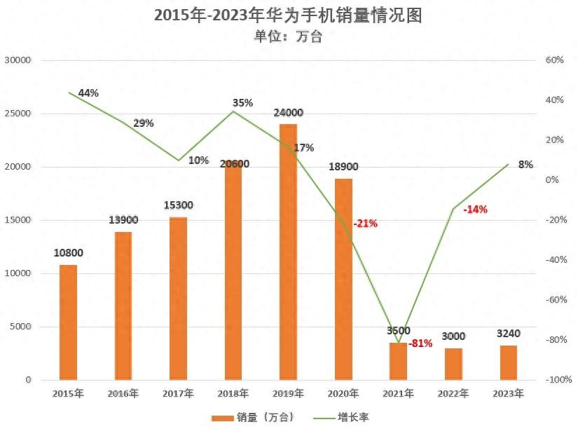 直到2023年底,隨著Mate60的橫空出世,麒麟芯片回歸、5G回歸,華為手機(jī)也正式王者歸來,銷量大增。