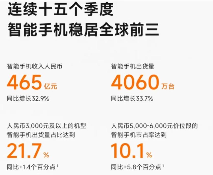 而從全球市場來看,小米出貨量4060萬臺,增長了34%,手機(jī)收入也增長了33%,同時高端機(jī)的銷量也增長了,3000+增長1.4%,5000-6000元增長5.8%。