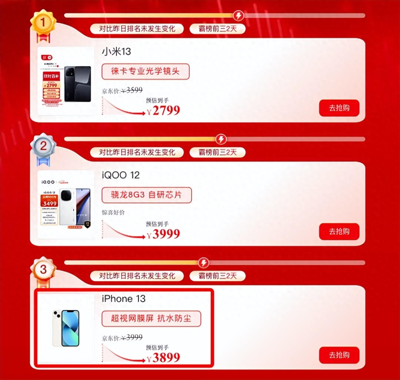 iPhone13迎來“新巔峰”,直降2100元,沖上三千檔銷量第三名