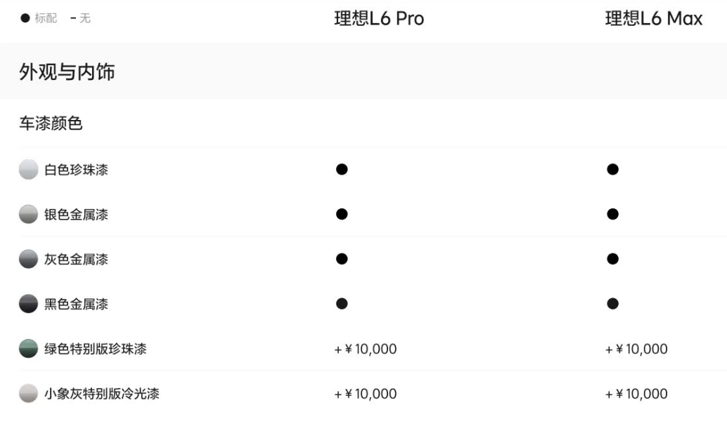 首先得說說,理想L6的顏值那是相當的高,提供了6種炫酷外觀色和3種精致內飾色供您選擇。想要與眾不同?綠色特別版珍珠漆或是小象灰特別版冷光漆絕對能滿足您的個性需求,不過想要這些特殊色彩,您得多掏1萬元哦。