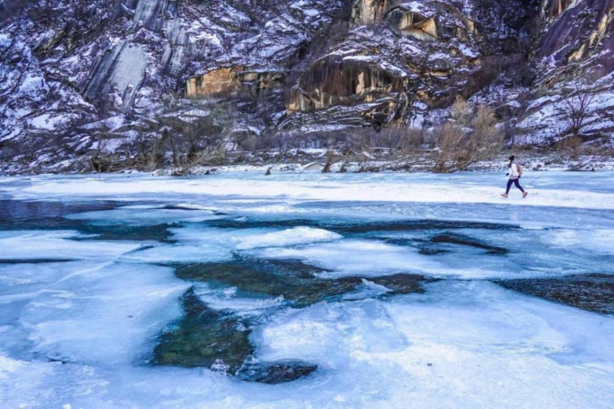 小寒已過,數(shù)九寒天的京郊大地冬景美麗,吸引不少市民游京郊、賞冰雪。密云境內(nèi)的白河河面已結(jié)上厚厚的冰層,不少市民來到密云龍?jiān)粕骄皡^(qū),游覽冬日的白河峽谷,欣賞冰河景觀;臨近的懷柔區(qū)云夢(mèng)仙境景區(qū),白河岸邊山巖上掛起十多米高的冰瀑,晶瑩剔透的冰瀑與冰河相映成趣,吸引不少游客打卡留影。