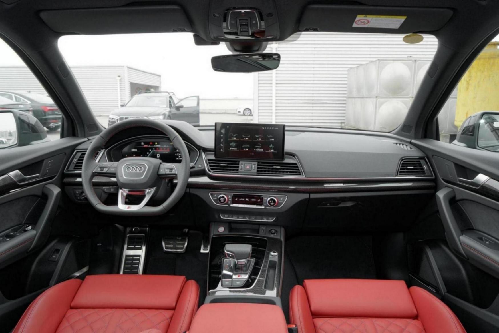 2024款?yuàn)W迪SQ5在內(nèi)飾方面,運(yùn)動(dòng)氣息還是比較足的,座椅采用紅色涂裝,門板采用翻毛皮包裹,并且增加了紅色縫線,方向盤采用平底式設(shè)計(jì),液晶儀表的顯示效果也是比較細(xì)膩,中控屏幕的尺寸為10.1英寸。