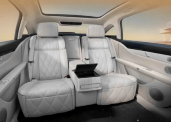 車身尺寸長寬高分別為5160*1987*1486毫米,軸距3050毫米,除5座版車型外,還提供了4座版車型,第二排的空間采用獨立座椅設計,其中右后方的座椅為零重力座椅,能夠支持一鍵調節靠背后仰,以及前排靠背向后放平形成腿托。內部還提供了大尺寸投影幕布、車載冰箱、前后獨立空調等,側窗和全景天窗均提供可電動調節的遮陽簾,能夠保證車內乘客的舒適性和娛樂性。
