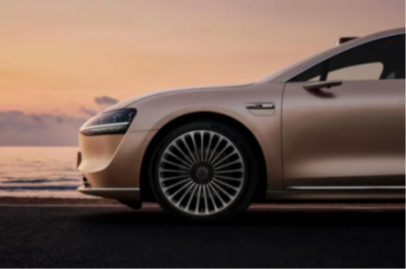 車身側面的設計十分簡約大氣,并沒有采用大量的線條勾勒,隱藏式的水切線設計十分的自然飽滿。隱藏式的門把手以及電子后視鏡十分的簡潔。大尺寸的多輻式輪轂造型配備了米其林品牌輪胎。