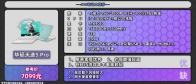 i7 13650HX+RTX4060 配置 7000 多元就能買到,對(duì)于游戲和學(xué)習(xí)一般不會(huì)造成瓶頸,天選 5 Pro 在屏幕、接口和性能釋放方面也沒有明顯短板,算是一個(gè)很甜點(diǎn)的型號(hào)。