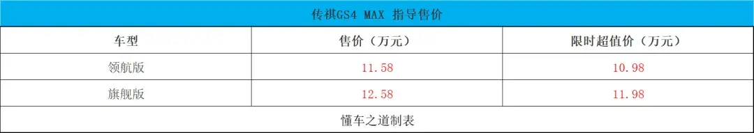廣汽傳祺GS4 MAX正式發(fā)布上市,新車共推出2款配置,售價分別為11.58萬元和12.58萬元,同時官方推出限時超值價,分別為10.98萬和11.98萬。新車將提供4款外觀配色+2款內飾配色共選擇。動力方面,新車搭載1.5TGDI+7DCT動力總成,其中1.5T發(fā)動機最大功率為177馬力(130kW),峰值扭矩為270牛·米,官方公布其WLTC工況下油耗為6.8L/100km,NEDC油耗6.4L/100km。底盤使用前麥弗遜式獨立懸架、后多連桿獨立懸架,可實現最小轉彎半徑5.4m,麋鹿成績?yōu)?8km/h。采用的自適應動態(tài)控制系統(tǒng)集成EMS、TCU、ESP等,擁有更靈敏、更安全的駕駛體驗。
