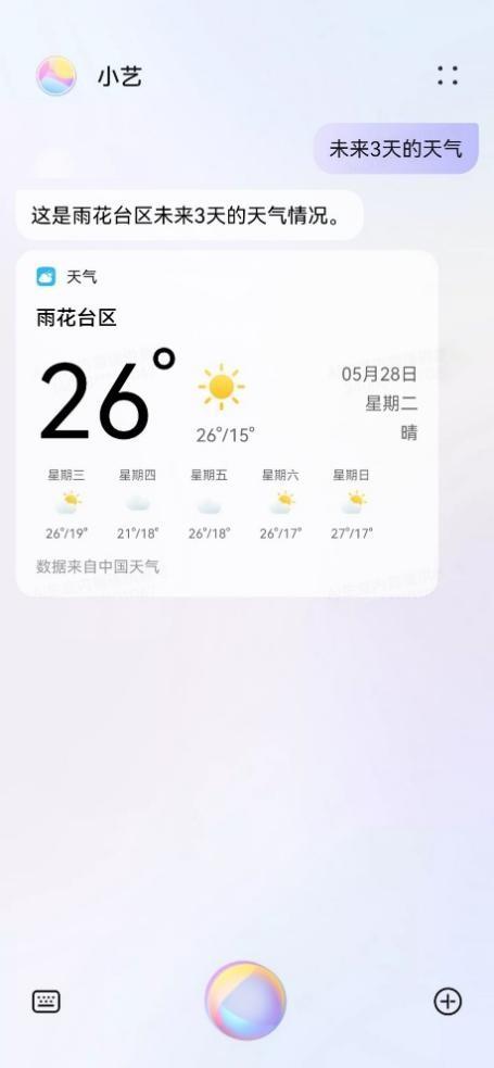 高考期間,了解天氣情況非常重要。只要喚醒小藝,提問(wèn)“明天的天氣如何”,即可快速獲取天氣預(yù)報(bào),從而可以合理安排出行計(jì)劃,選擇適當(dāng)?shù)囊挛铮苊馓鞖庾兓绊懣荚嚑顟B(tài)。