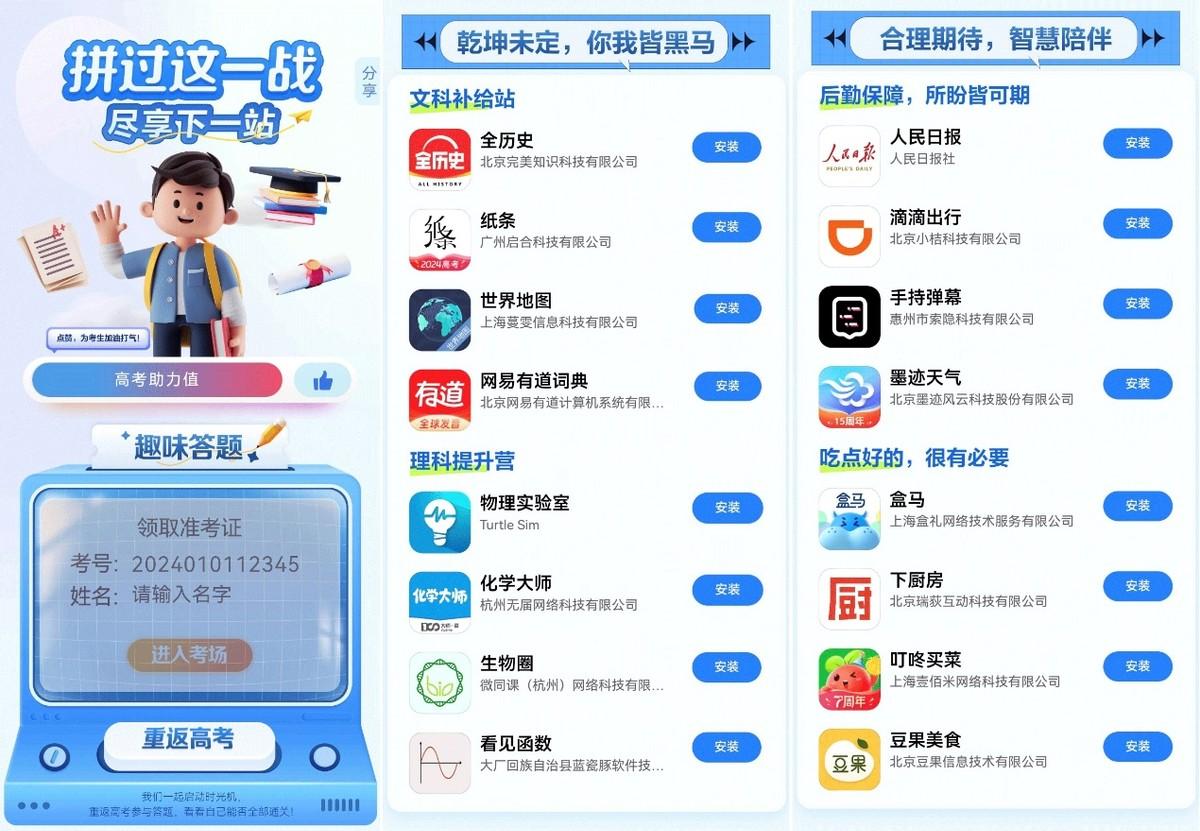 華為應(yīng)用市場(chǎng)的“拼過(guò)這一戰(zhàn),盡享下一站”主題活動(dòng)中,為考生精心挑選了一系列備考必備應(yīng)用,幫助他們高效備戰(zhàn)高考。比如文科補(bǔ)給站和理科提升營(yíng)匯集了豐富的學(xué)習(xí)資源和工具,考生們可以利用這些應(yīng)用進(jìn)行針對(duì)性的復(fù)習(xí),從而顯著提升學(xué)習(xí)效果。