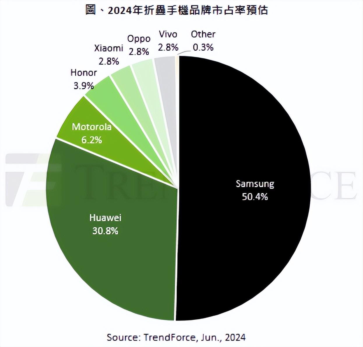 而且TrendForce集邦咨詢還爆出,華為將會在今年第三季度發(fā)布全球首款三折疊手機,形態(tài)以及技術(shù)再次突破,帶來的體驗更為新奇,因而綜合考慮,預(yù)估華為今年的折疊屏市場份額有望突破30%。