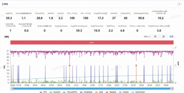 ▲小米14 Pro的30分鐘璃月場景跑圖平均幀率達到59.3fps