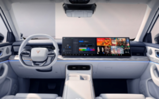 車身尺寸方面,新車長寬高分別為4770/1900/1660毫米,軸距為2810毫米,是一款標(biāo)準(zhǔn)中型SUV的“身板”。內(nèi)飾方面,該車采用了環(huán)抱式布局,車內(nèi)搭載兩塊15.6英寸大屏幕,并且中控屏一直延伸到副駕駛位置,在高通8155芯片的加持下,車機(jī)能夠帶來更暢快的影音娛樂體驗(yàn)。