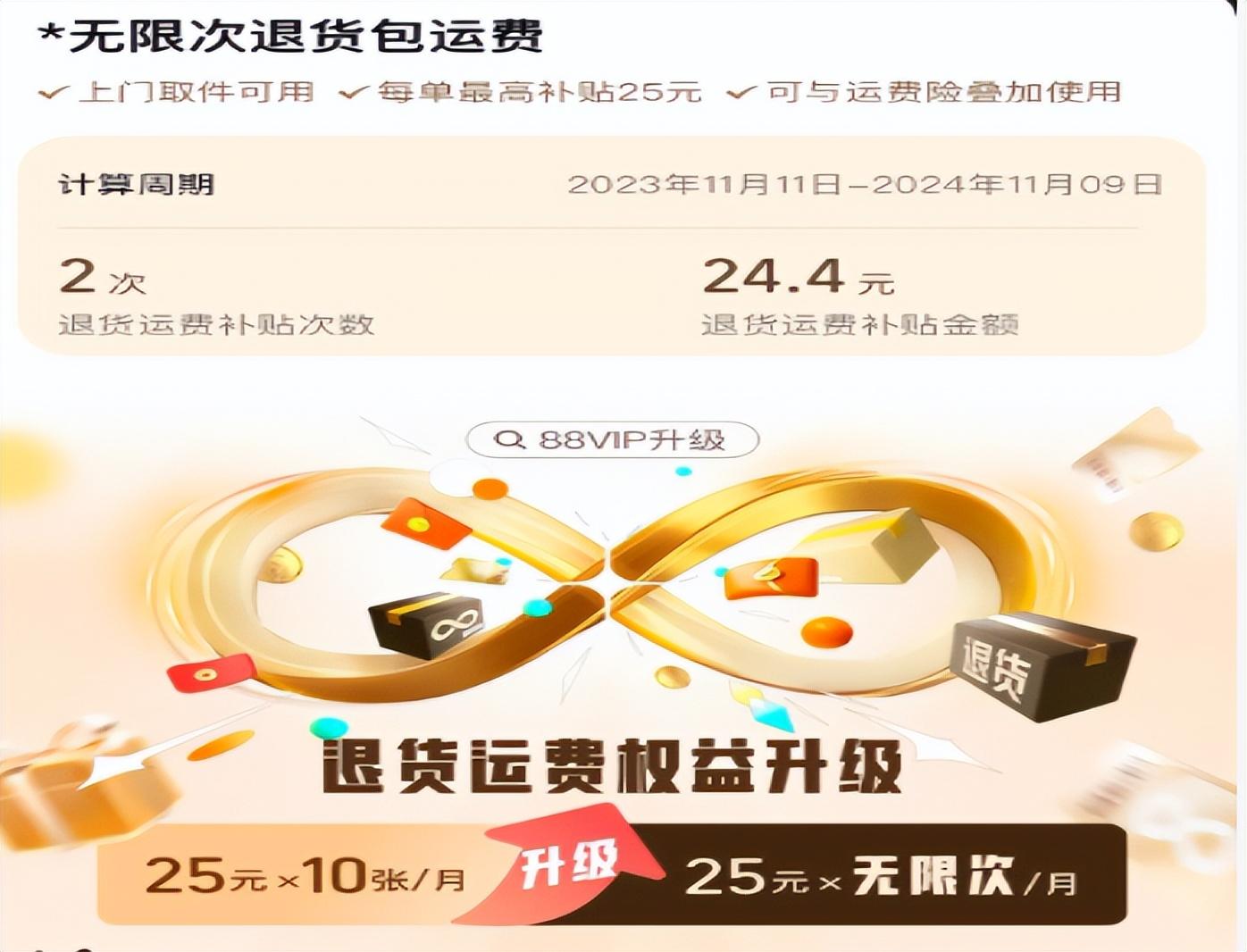 說(shuō)實(shí)話,這下淘寶的88VIP們可就賺大了,為啥呢?因?yàn)樘詫毥oVIP搞了個(gè)大招——“無(wú)限次退貨包運(yùn)費(fèi)”服務(wù),這就好像是給了你一把“無(wú)憂退貨”的金鑰匙啊!
