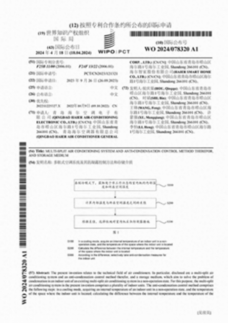 根據企查查數據顯示海爾智家(600690)公布了一項國際專利申請,專利名為“多聯式空調系統及其防凝露控制方法和存儲介質”,專利申請號為PCT/CN2023/121321,國際公布日為2024年4月18日。
