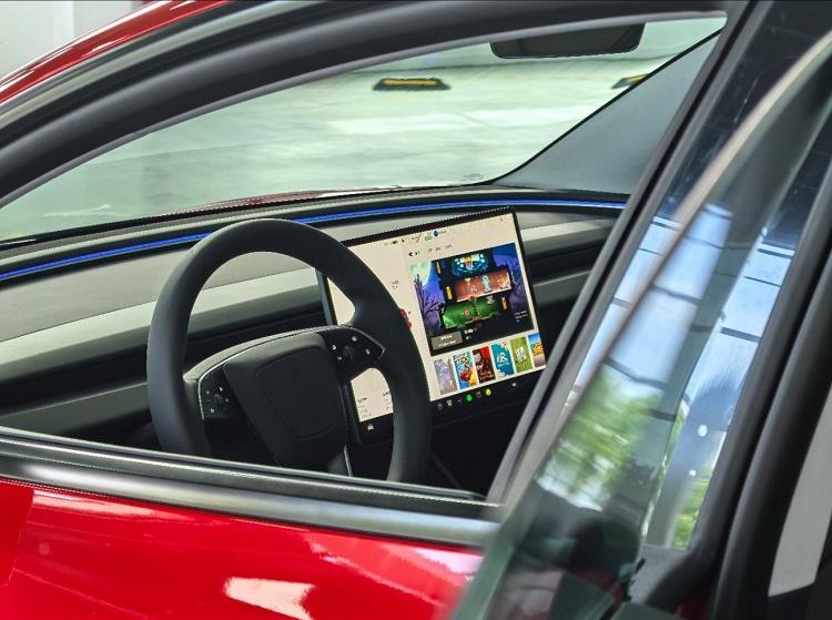 內飾整體設計也和普通Model 3沒什么區別,只是中控臺采用碳纖維材質飾板,搭配門板上的Alcantara材質,營造更運動的車內氛圍。