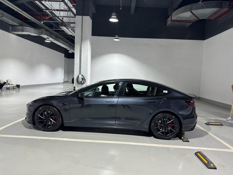 整輛車的長寬高分別為4724mm/1848mm/1430mm,軸距為2875mm,和普通版Model 3保持一致。