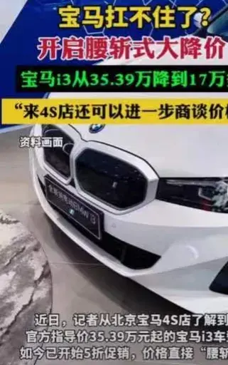而關于這個消息被媒體平臺刷屏,其中官方指導價35.39萬元起的寶馬i3車型,如今已開始5折促銷,價格直接“腰斬”。而大降價的不只寶馬i3,今年1月剛剛發布的全新寶馬i5, 經銷商也給出了大幅優惠。