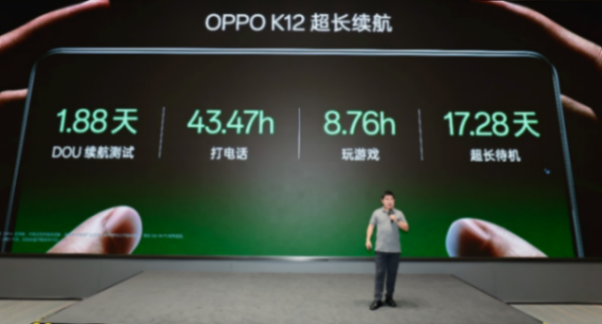 在溝通會(huì)上,張加亮表示即將發(fā)布的OPPO K12是 OPPO 迄今續(xù)航最好的智能手機(jī)。它搭載長(zhǎng)壽版100W 超級(jí)閃充和5500mAh超大電池,可以實(shí)現(xiàn)充電 5 分鐘,通話 10 小時(shí)。根據(jù)DOU續(xù)航測(cè)試,其續(xù)航時(shí)間高達(dá)1.88天,游戲時(shí)間長(zhǎng)達(dá)8.76小時(shí),支持高達(dá)17.28天的超長(zhǎng)待機(jī)時(shí)間。
