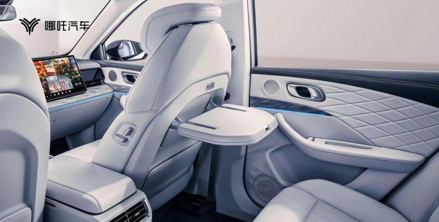 內飾,哪吒L采用環抱式座艙分割,簡約的車內層次,非常舒心,與很多新能源車一樣,哪吒L也采用了懷擋。