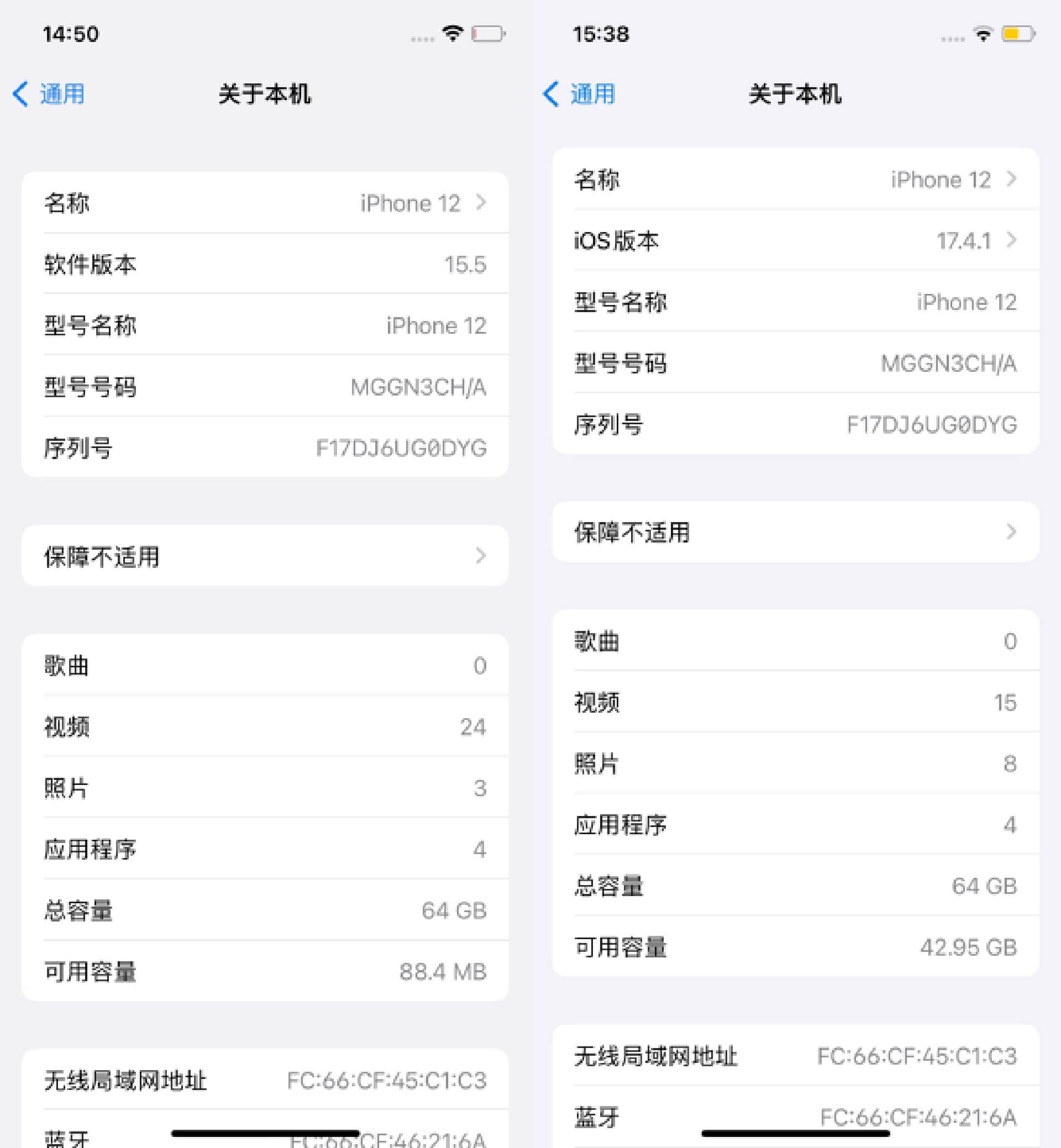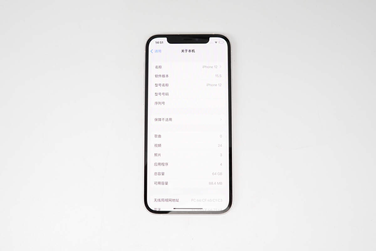 充電頭網手里這款iPhone12升級前系統版本為iOS15.5。