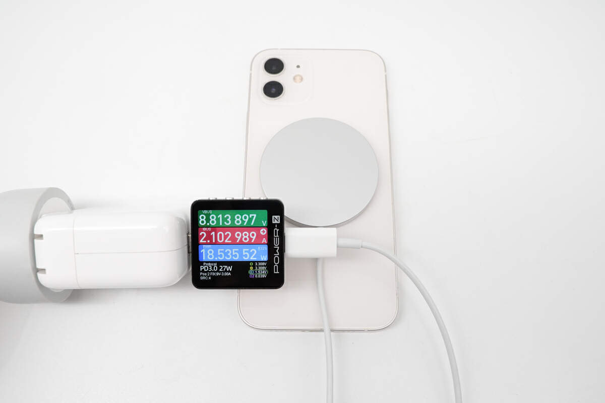 電酷POWER-Z KM003C實測Qi2無線充電器可給更新后的iPhone12提供8.8V 2.1A 18.5W的功率輸出,除去測試儀、線材、充電器誤差,達到Qi2無線快充15W水平。可以看出iOS17.4.1版本確實讓iPhone12適配了Qi2協議。