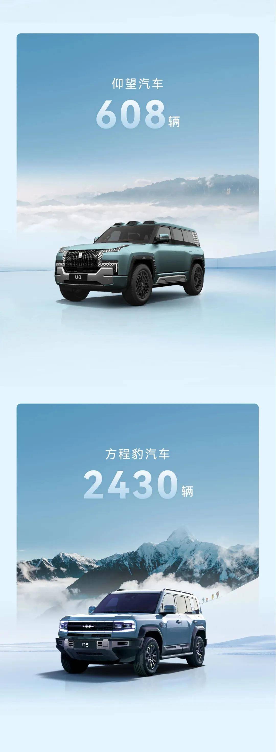 具體到細分品牌可以看到,比亞迪汽車王朝、海洋系列共銷售315,227輛,同比增長38.2%;騰勢汽車銷售12,223輛,同比增長11.1%;仰望汽車銷售608輛,方程豹汽車銷售2,430輛。
