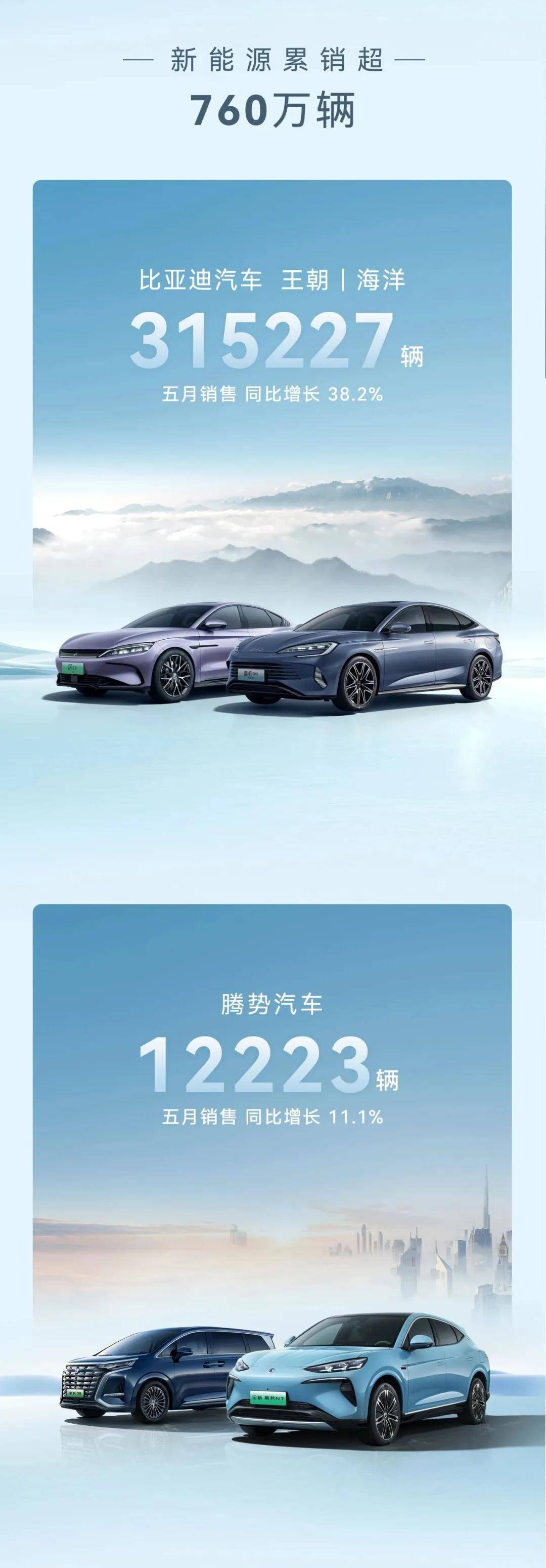 比亞迪5月銷售331,817輛,含乘用車出口37,499輛,同比增加38.2%。截止今年5月,比亞迪汽車年度銷售總量已經126萬輛,確實是當之無愧的第一名。