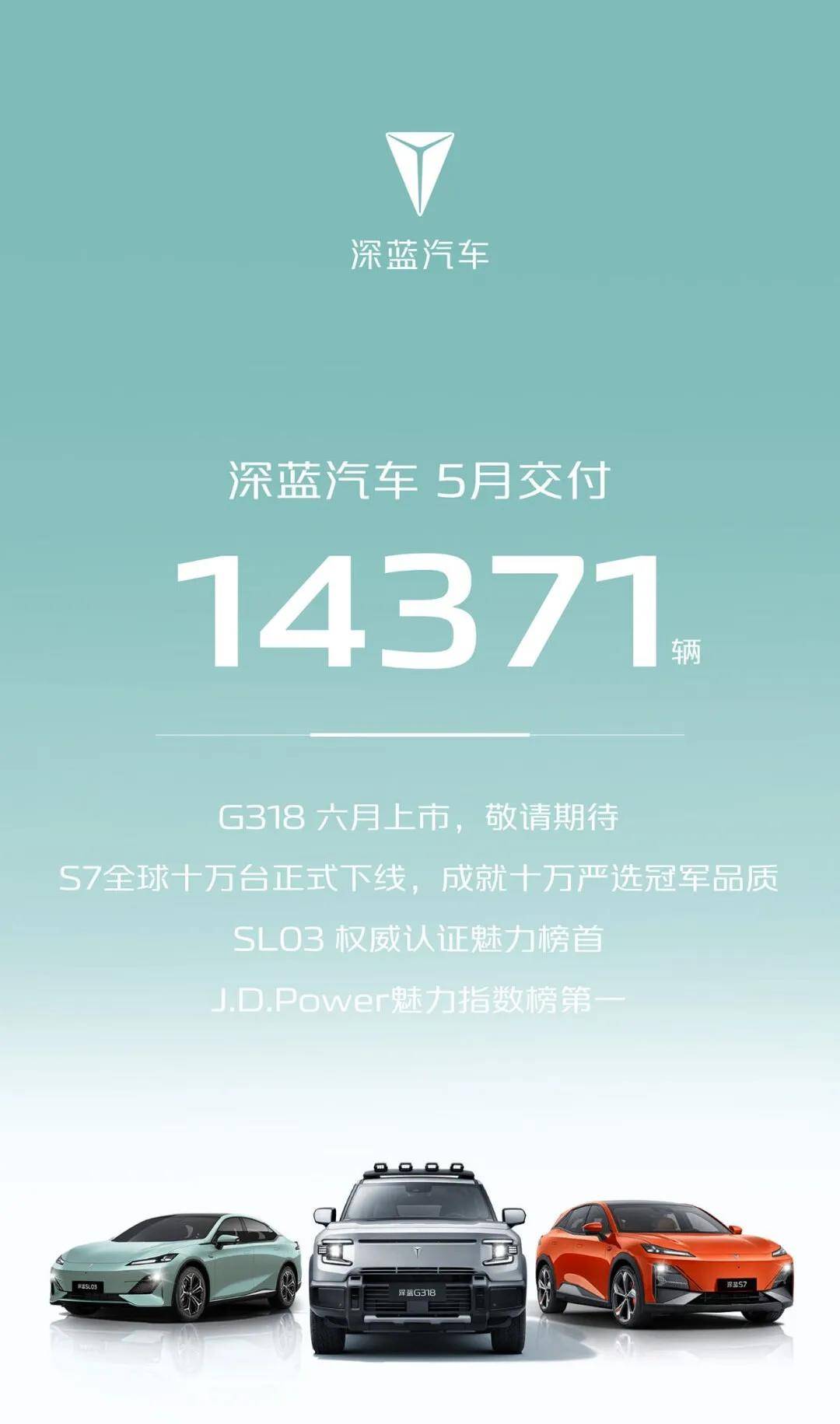 具體品牌而言,長安啟源5月交付新車13,557輛,深藍汽車5月交付新車14,371輛。對比上月,這兩個品牌的銷量都有所提升。