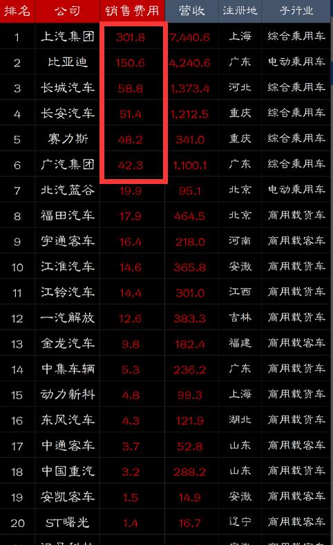 那么,究竟有多感人呢?我們直接看數據就知道了,早在去年,有人公布了各大車企的銷售費用,上汽集團以301.8億傲視群雄,而之后的是比亞迪的150.6億和長城汽車的58.8億,后面跟隨的都有像長安汽車、賽力斯和廣汽集團等等,讓我們費解的是這個榜單里面,我們居然發現奇瑞的身影卻不見蹤影了,為啥?