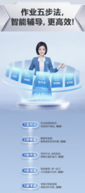 步步高學習機 S8 支持智能輔助,內置“作業五步法”,支持定時長、講難題、批作業、練錯題和刷考題。