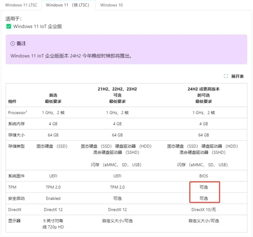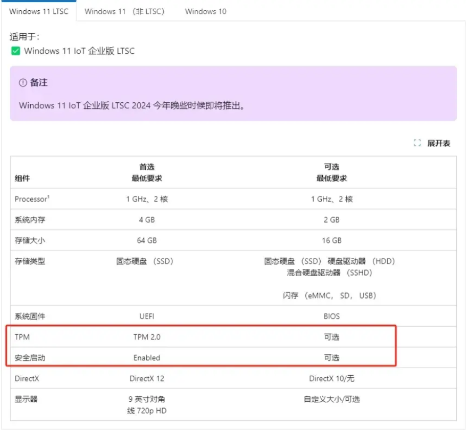 微軟官方表示,即將推出的Win 11 IoT企業(yè)版LTSC,將會(huì)把TPM 2.0和安全啟動(dòng)設(shè)為“可選項(xiàng)”,也就是說(shuō)不再?gòu)?qiáng)制要求。另外,對(duì)于內(nèi)存和存儲(chǔ)空間的要求也將大幅降低,最低配置將調(diào)整為2GB內(nèi)存+16GB存儲(chǔ)空間。