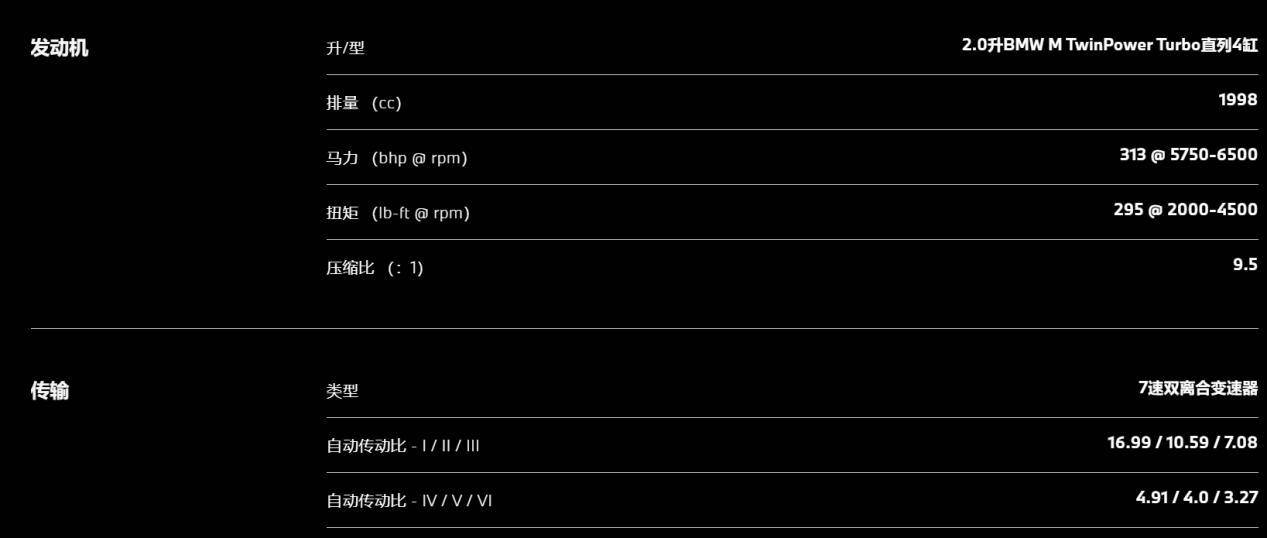 動力方面,海外版本的X1 M35i 搭載的2.0升直列四缸渦輪增壓發動機,歐版最大功率為221千瓦(300馬力),峰值扭矩400牛·米,美版的最大功率為233千瓦(313馬力),峰值扭矩也是400牛·米,兩個版本匹配的都是7速雙離合變速箱,0-100公里/小時加速時間為5.4秒。