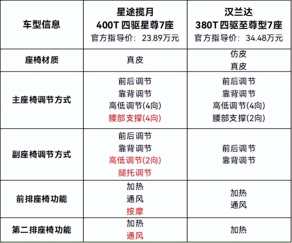 作為家用SUV市場(chǎng)里的“老選手”,漢蘭達(dá)顯然有點(diǎn)捉襟見(jiàn)肘了。在業(yè)內(nèi)平臺(tái)車輛信息配置對(duì)比中,可以明顯看到漢蘭達(dá)座椅材質(zhì)并不是完全采用真皮,主、副駕座椅的腰部支撐、高低調(diào)節(jié)、腿托調(diào)節(jié)、按摩等功能要么減少,要么直接減配,第二排座椅更是只有加熱功能,炎熱夏季出行捂汗或許是常態(tài),對(duì)喜歡長(zhǎng)途自駕游的家庭很不友好。